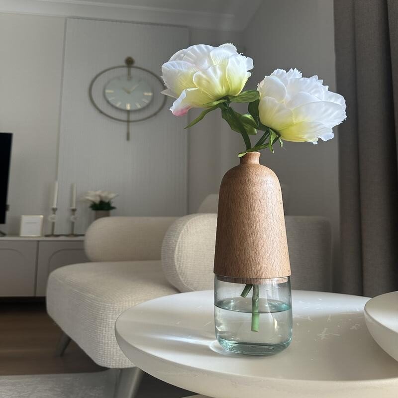 Dekoratif Cam ve Ahşap Vazo